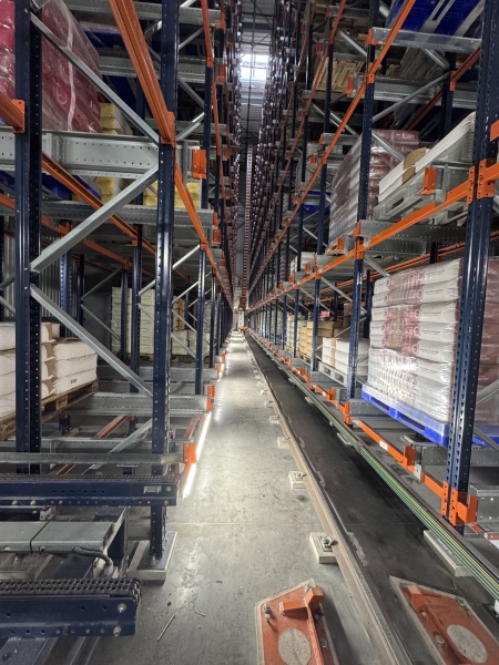 - 1 entrepôt logistique avec palettiseurs et transtockeur